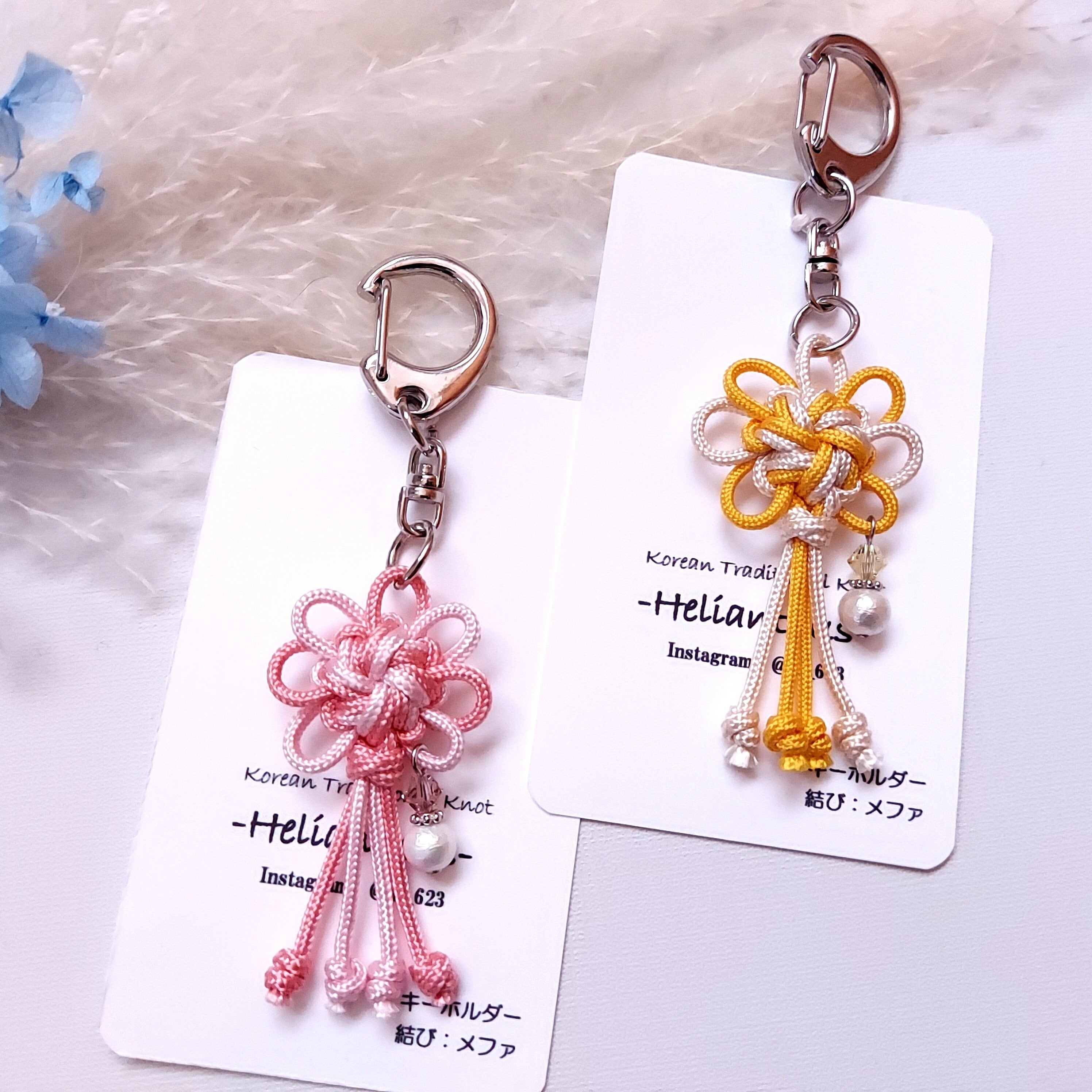 韓国伝統飾り結び『メドゥプ』の技法で作られた、華やかな梅の花をモチーフにした『セボルメファ』のキーホルダーです。