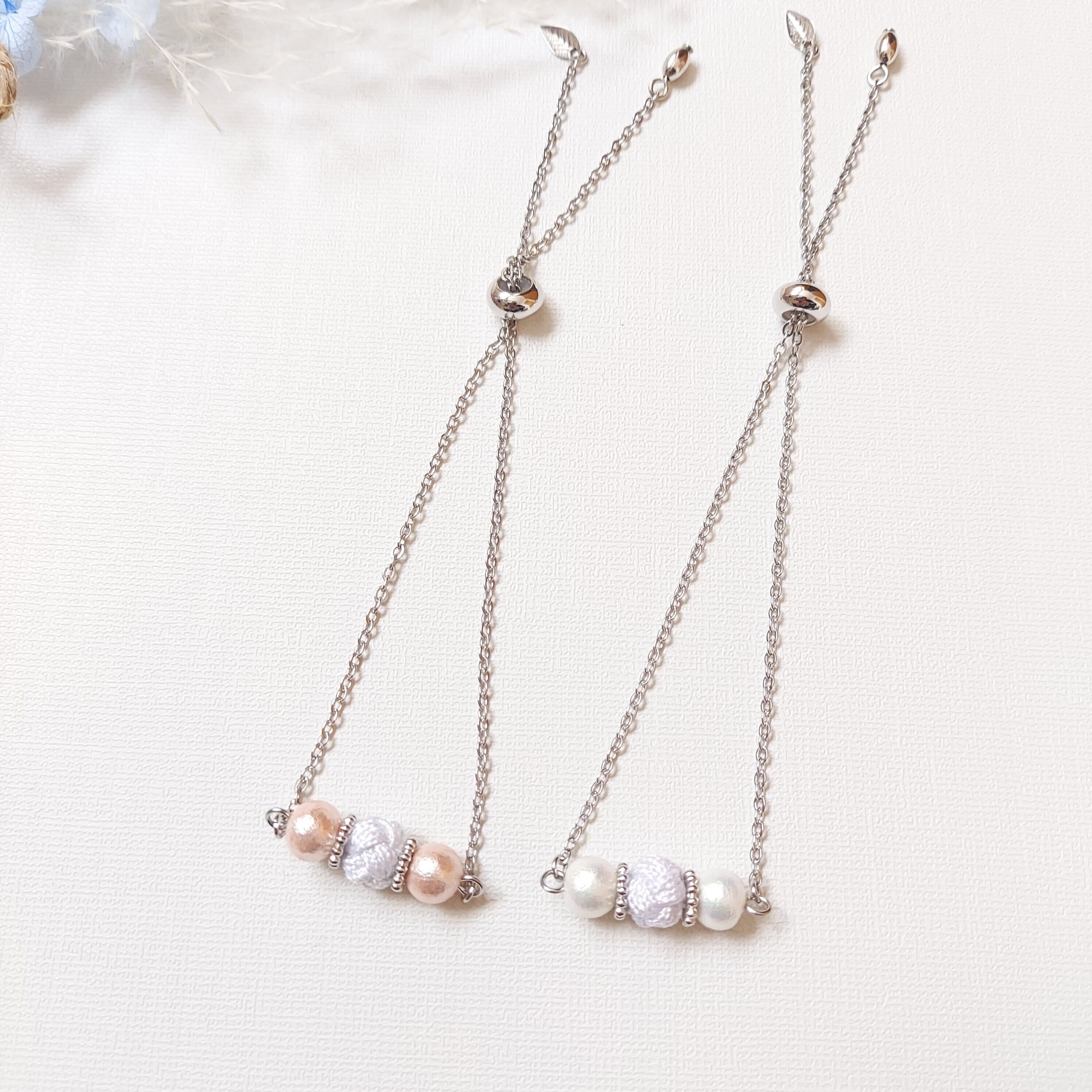 このブレスレットはスライドボールを採用し、サイズ調整が簡単にできます。お友達やご家族と色違いで揃えて、楽しいコーディネートを楽しんでいただけるのも魅力の一つです。